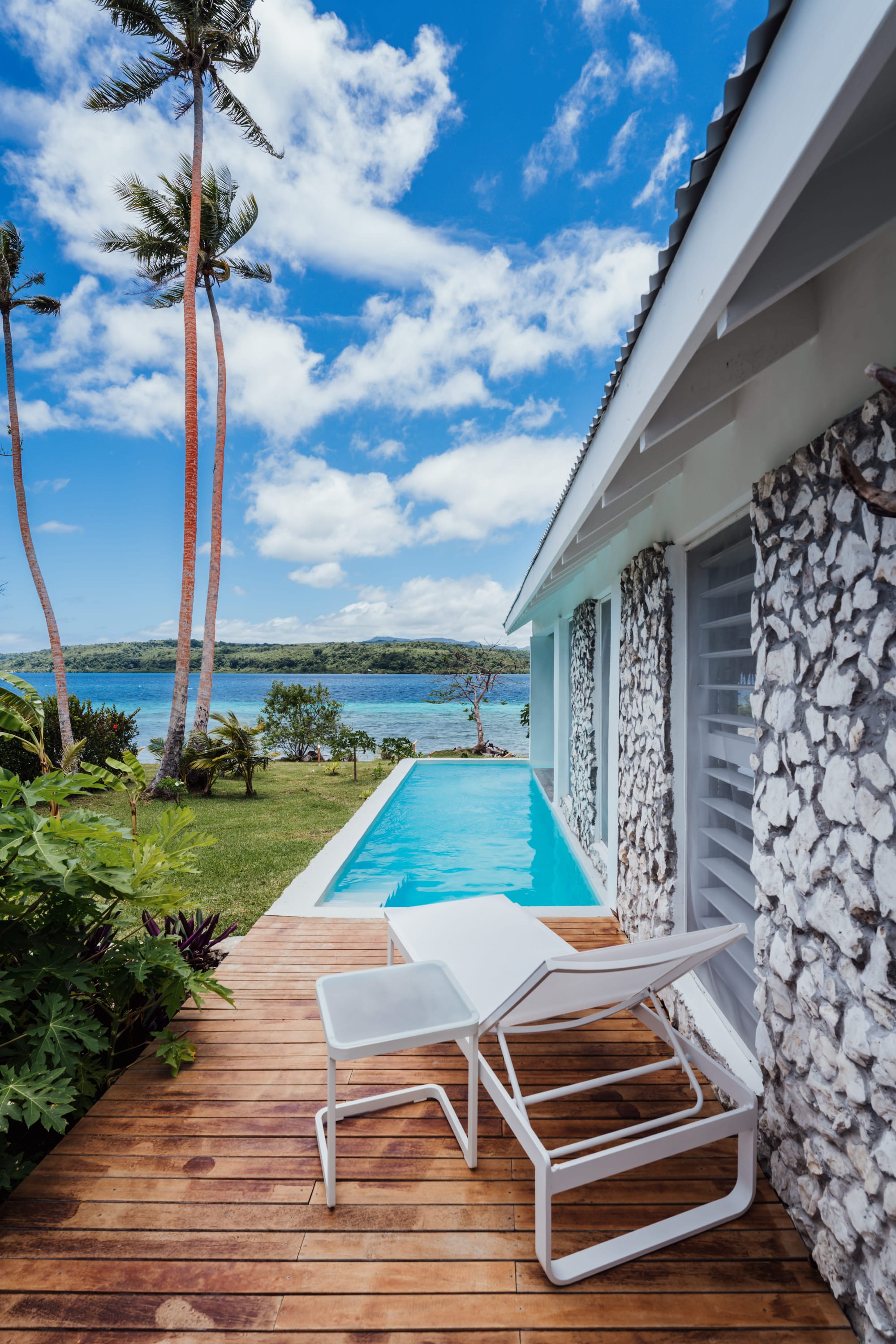 The Moso operates as one of Vanuatu's only resorts running entirely on solar power, with 160 panels powering an off-grid property that uses chemical-free pools, heat pump water systems, and line-dried linens instead of gas and air conditioning. The resort practices deep community integration, with over half of its 32 staff drawn from the two neighboring villages, while supporting local economies through boat transfers, construction materials sourcing, school projects, and hospitality internships for island youth. Circular practices extend to construction itself, including crafting cedar louvres from timber salvaged after Cyclone Pam and crushing glass bottles for building materials, while sourcing 75% of bistro ingredients locally and seasonally.